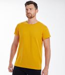 100% organic cotton.* Organic or in-conversion to organic cotton. Modern fit. 1x1 ribbed collar. Roll-up sleeves with bar tacks. Twin needle hem. Tear out label.