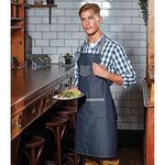 A quirky addition to the denim range, this bib apron gives an 'industrial-chic' feel to service with large gun metal eyelets securing the ties in place. The shade on the underside forms the contrast trim detail on the pocket and ties for a great reversible effect.
